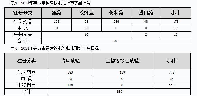2014年,药审中心完成审评建议国家总局批准上市和批准临床研究的情况见表3、表4。